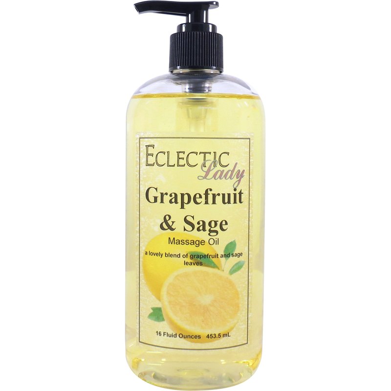 Grapefruit and Sage Massage Oil, 16 oz, With Sweet Almond Oil and Jojoba Oil, Preservative Free, Perfect for Aromatherapy and Relaxation