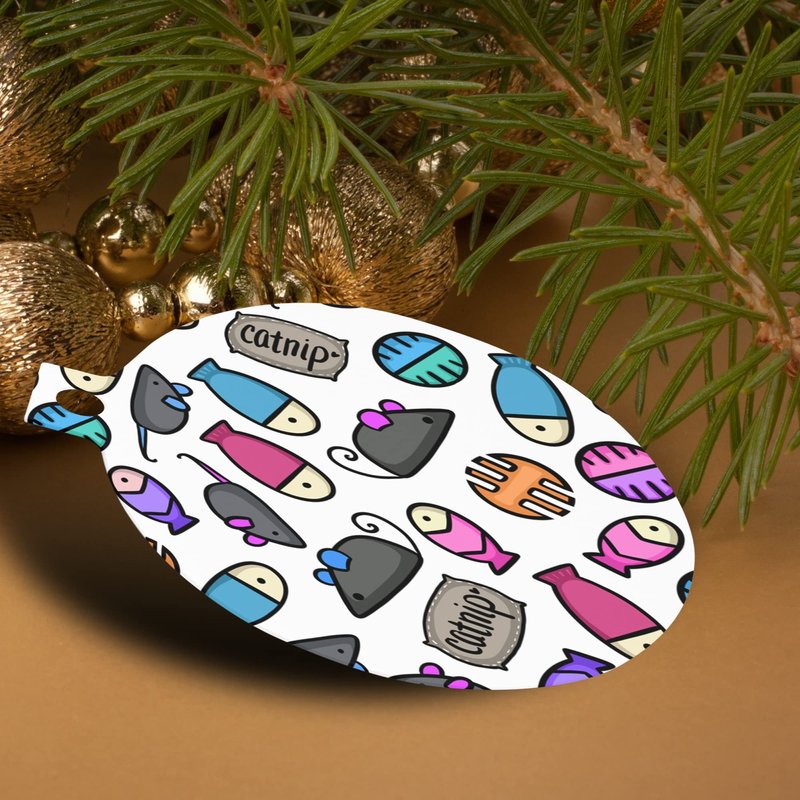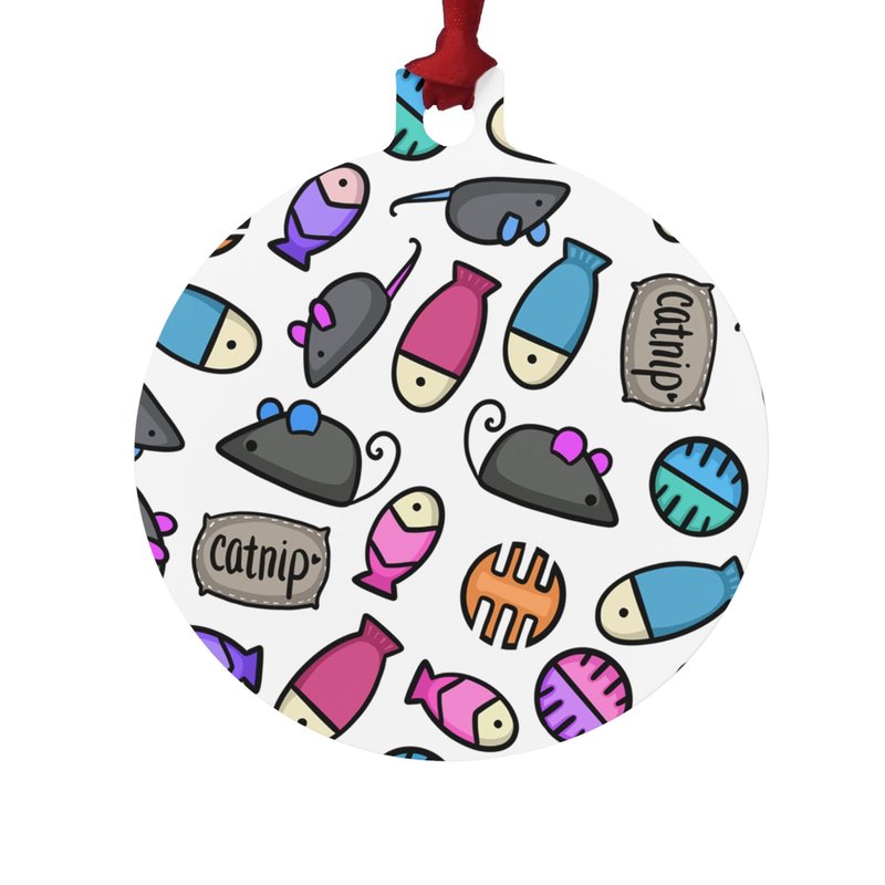 GRAPHICS & MORE Cat Toys Mouse Fish Catnip Pattern Aluminum Holiday Christmas Tree Ornament - 3.0" (7.6 cm) x 3.37" (8.6 cm)