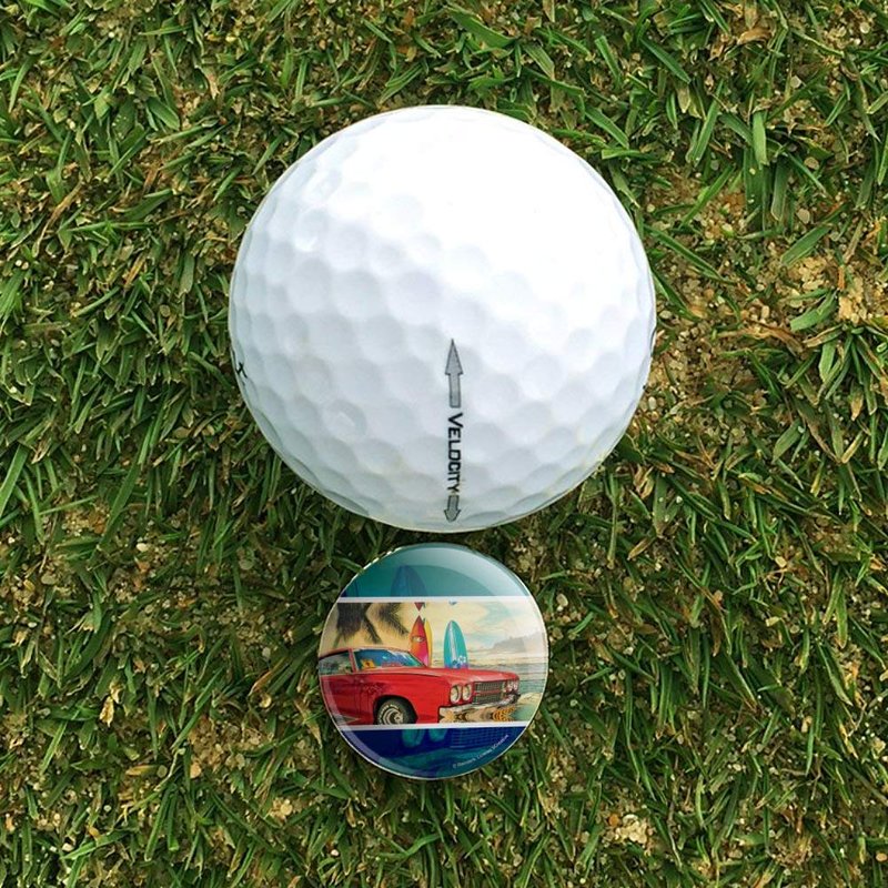 GRAPHICS & MORE Red Classic Muscle Car Beach with Surf Boards Golf Hat Clip with Magnetic Ball Marker