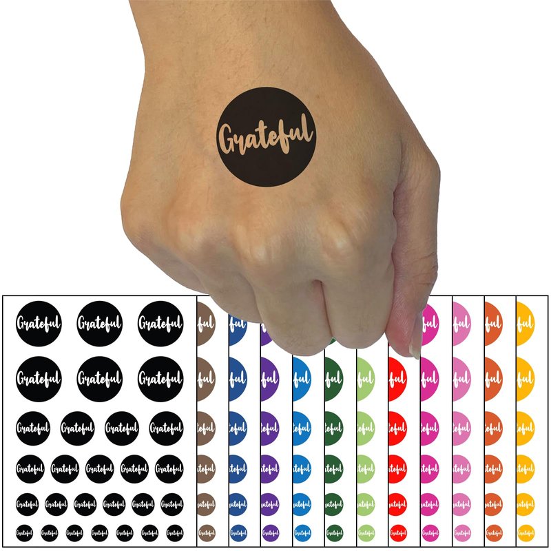Grateful Text in Circle Temporary Tattoo Water Resistant Fake Body Art Set Collection - Red (One Sheet)