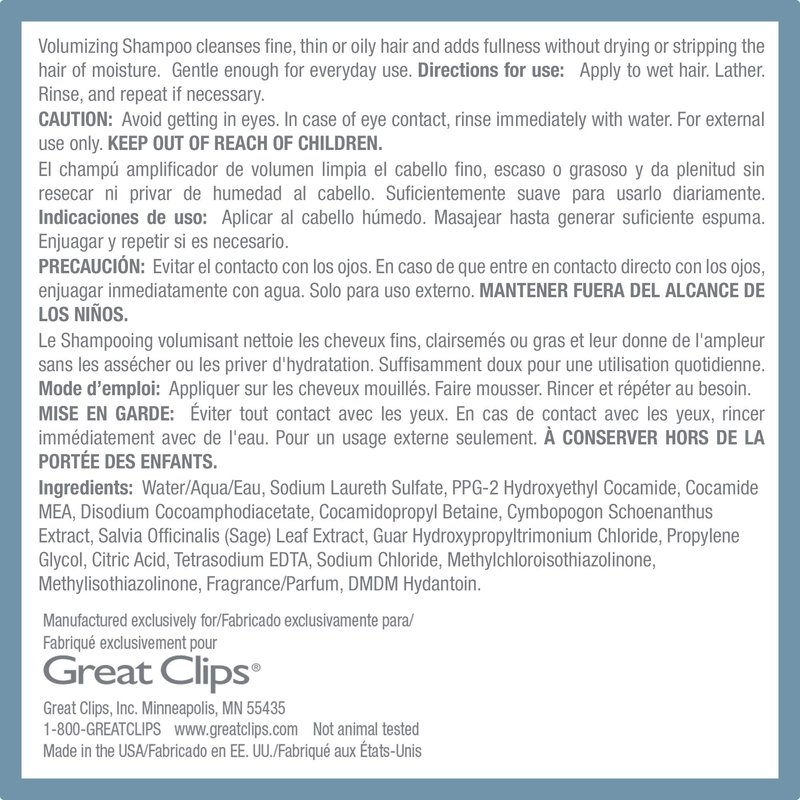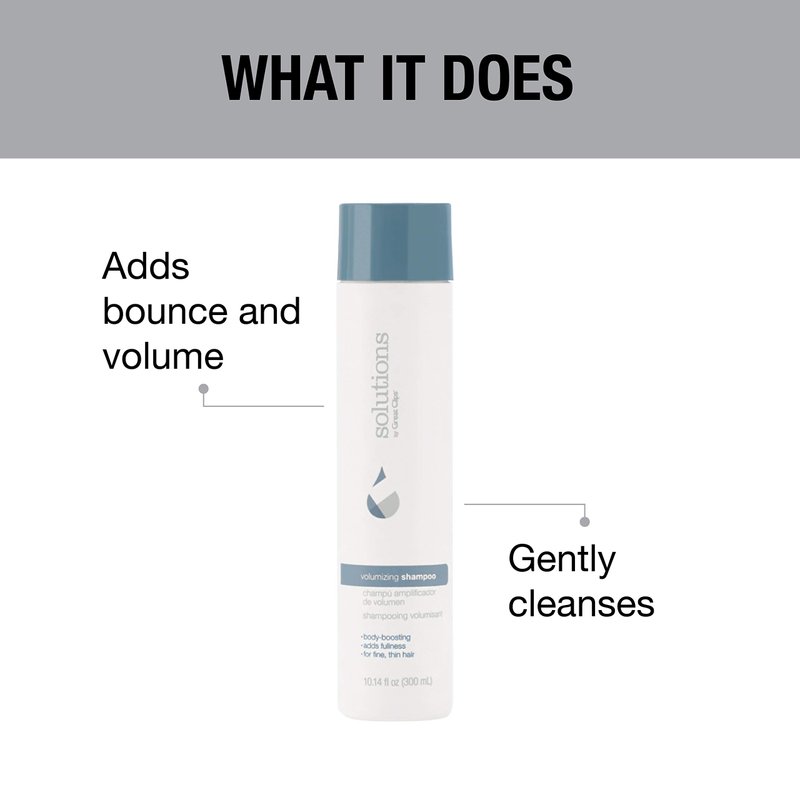 Solutions by Great Clips Volumizing Shampoo is ideal for fine, thin or oily hair, this gentle, daily shampoo provides maximum cleansing without drying or stripping effects.
