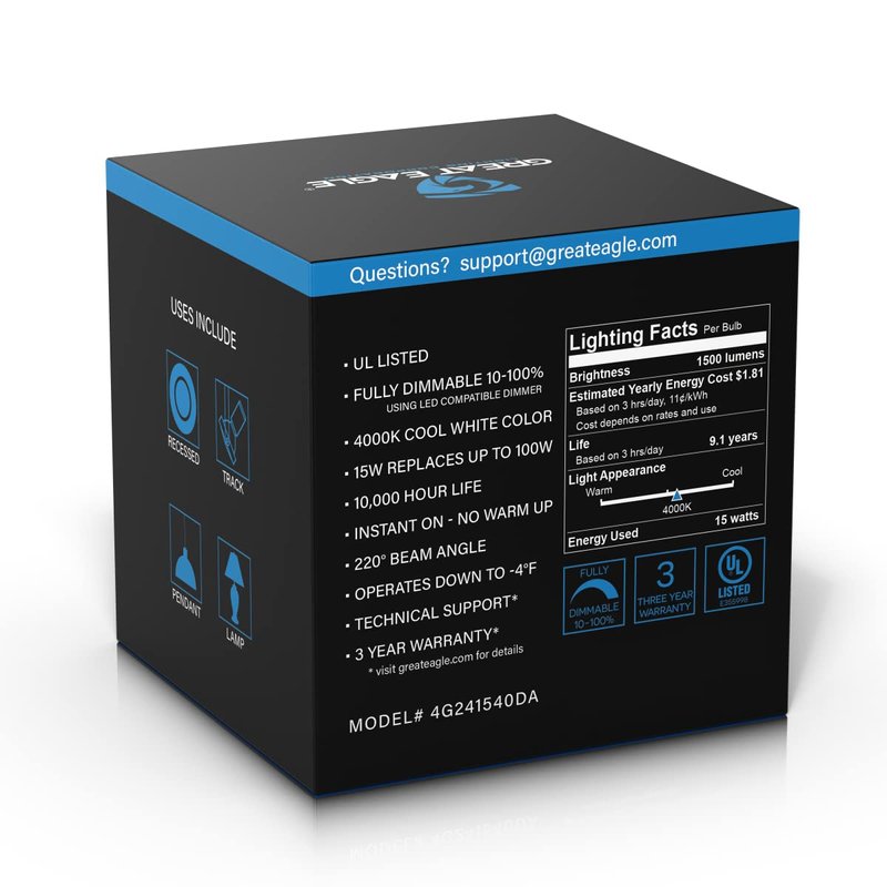 Great Eagle Lighting Corporation 15W (100W Equivalent) GU24 LED Light Bulb Dimmable 4000K Cool White, UL, replace CFL Twist-in 2 Prong (4-Pack)