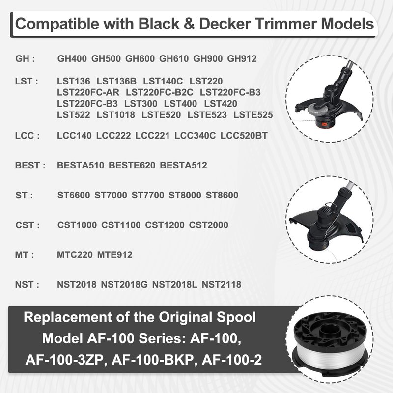 - 【Perfect Fit】 Compatible with most BLACK+DECKER automatic feed trimmers and replacement for the original spool model AF-100 series.