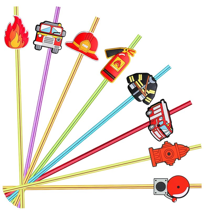- You'll Get:24pcs Fire Truck theme Drinking Straws, They Come in 6 Pattern, Each With 4 Straws for You to Mix and Match Freely, With 2 Cleaning Brushes.