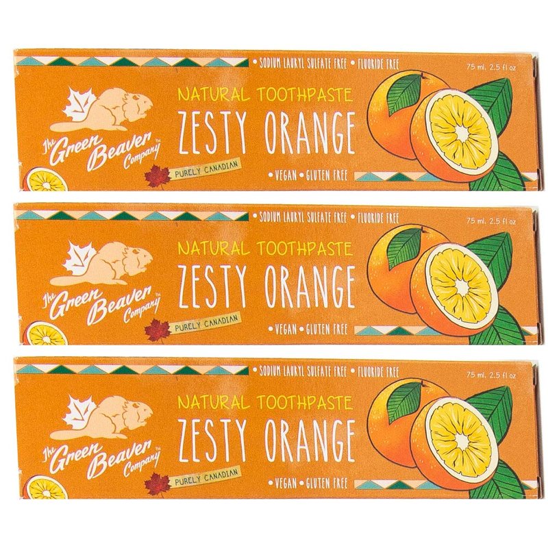 Green Beaver All Natural Organic Toothpaste, Vegan, Fluoride Free & Gluten Free Toothpaste, Zesty Orange Flavor, 75ml, 3 Pack