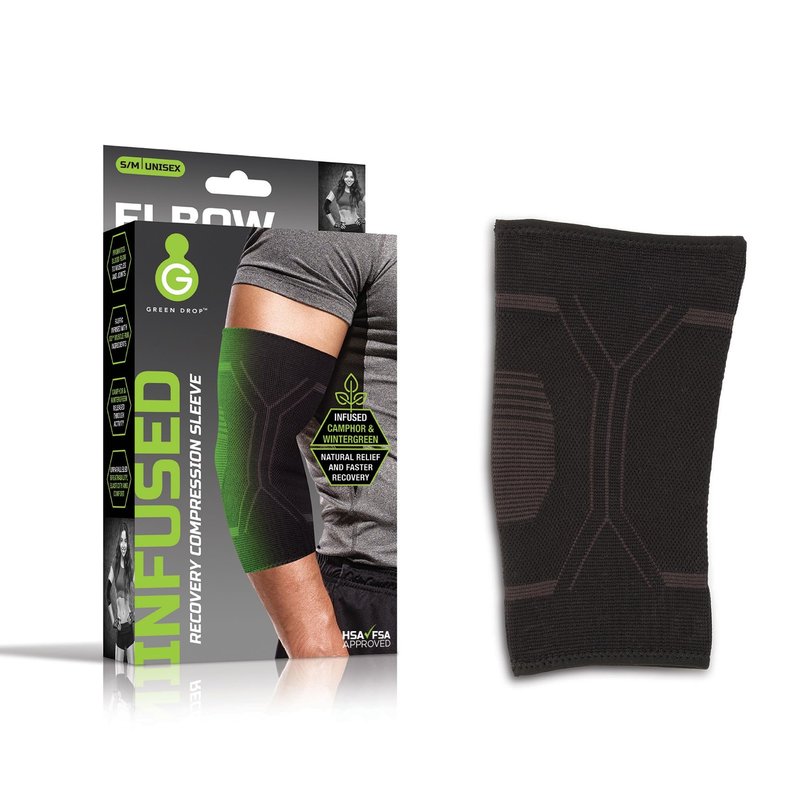 Green Drop Elbow Compression Sleeve - Breathable, Patented, Natural Relief-Herb-Infused Support, FSA/HSA Approved