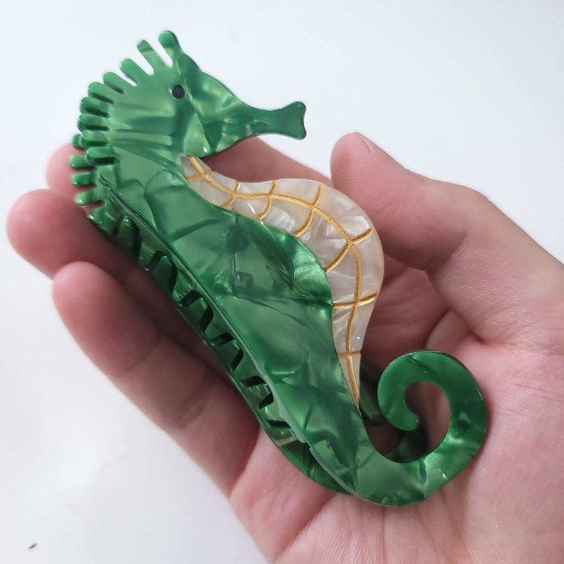 Green Hippocampus Claw Clip,Acetate Hair Clips,Small Claw Clips for Women