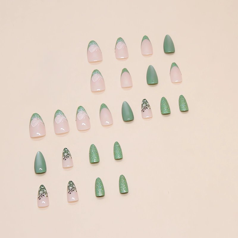 - 【Used in any occasion】These green flower french tip press on nails almond and white butterfly design look like glitter green gemstones, exquisite and unique, making you stand out in weddings, party and date.