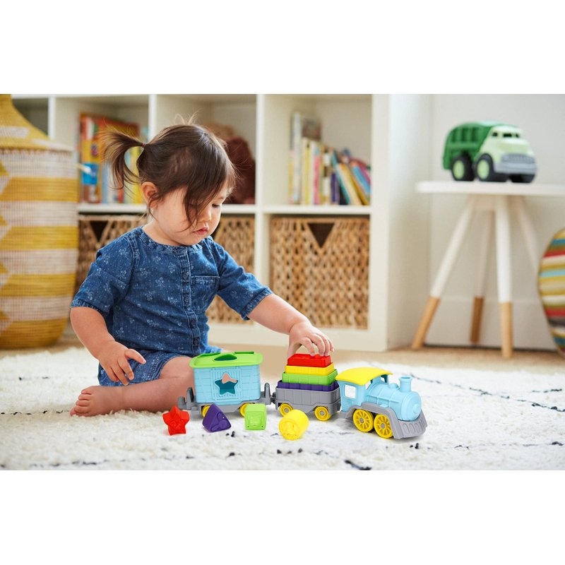 Green Toys Stack & Sort Train, Blue - 12 Piece Pretend Play, Motor Skills, Kids Toy Vehicle Playset. No BPA, phthalates, PVC. Dishwasher Safe, Recycled Plastic, Made in USA.