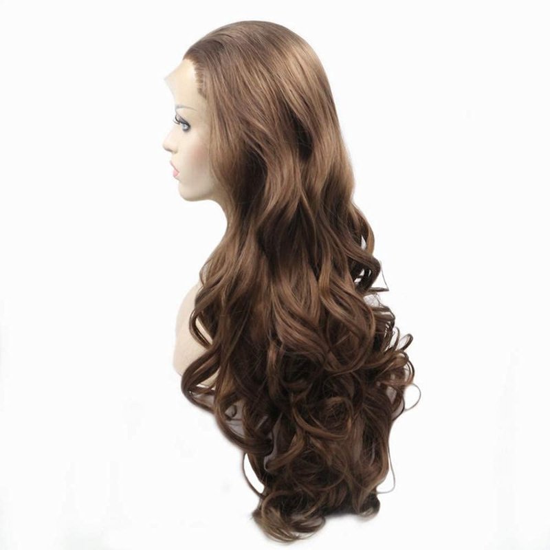 - 1.Enchanting classic 13x4 lace brown long wave lace front wigs with high quality synthetic hair, heat reasistant synthetic fiber support 160 degrees centigrade(320 degrees Fahrenheit)