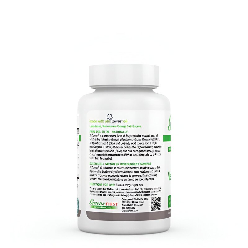Greens First PRO Ahiflower Oil Vegan Omega-3, 30 Day Supply – 2250 mg – Omega 3 + 6 + 9 Powerhouse – Contains Omega-3 Stearidonic Acid SDA – Gamma Linolenic Acid GLA – No Soy or Corn Oil – Non-GMO