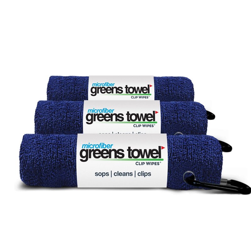 Greens Towel Navy Blue 3 Pack Golf Towel Set for Golf Bags with Clip, Plush Microfiber Nap Fabric, 16x16, The Original (Classic Navy)