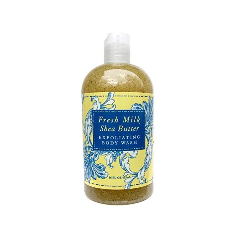 Greenwich Bay Trading Co. Exfoliating Scented Body Wash - Luxury Spa Quality, Shea & Cocoa Butter Enriched - 16 Ounce (Fresh Milk Shea Butter)