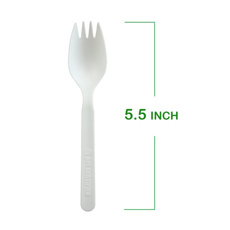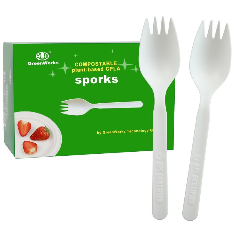 GreenWorks Compostable CPLA Sporks,100 Count 5.5" Disposable Cutlery Spork (Spoon Fork)
