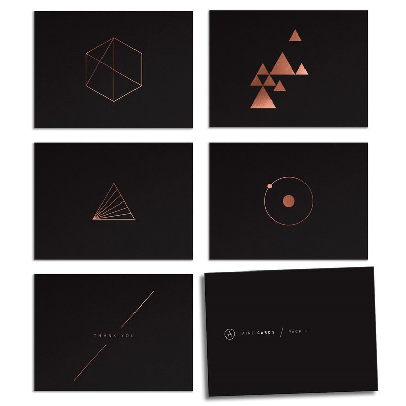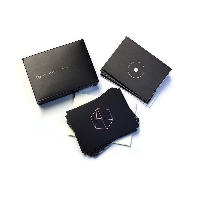 Express yourself, show gratitude and spread joy through your own words. Aire cards feature bold yet simple designs on high-quality card stock, ready for you to pen your message, sign, seal and deliver. The package includes 5 designs (2 cards x each design)