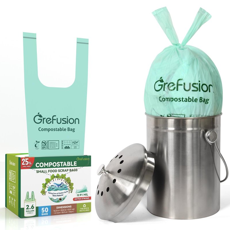 - 🌎【STURDY COMPOST BAGS &UPDATE SUPER THICK 】We are Proud of update the design of GreFusion compost bag thick for get carry weights,As kitchen trash can bags are able to withstand a heavy load of wet food waste and hot coffee grounds without any ripping.and sturdy enough with less chance of perforation by sharp leaves. keep a grefusion compost bin bags come in the home and go with confidence to stop the mess .