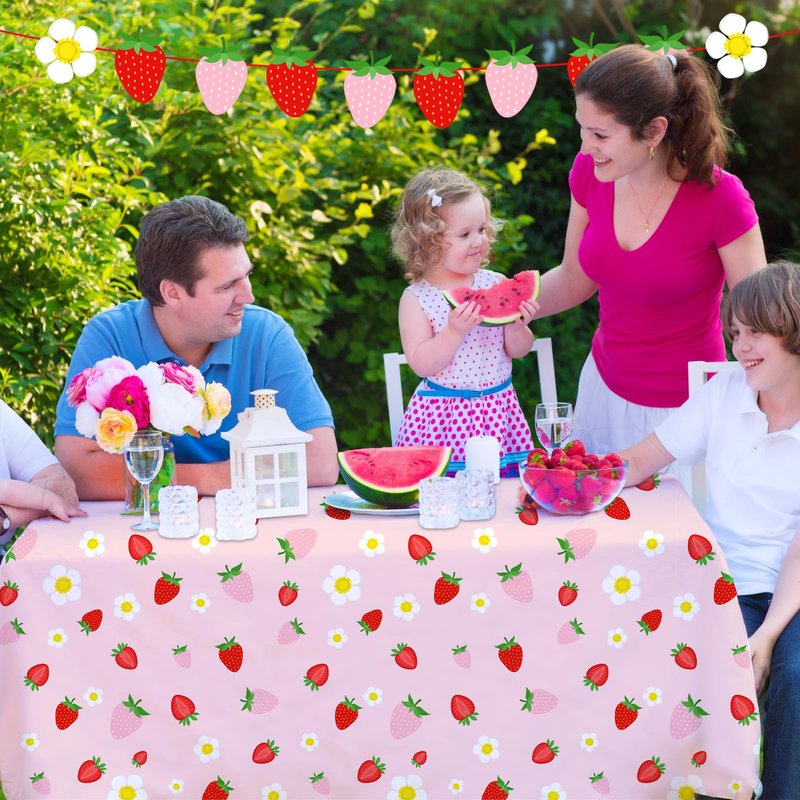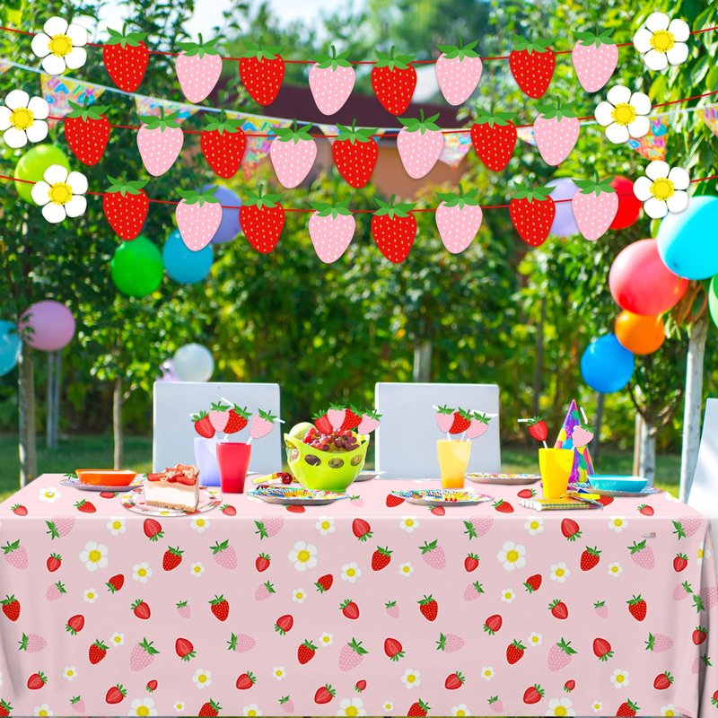 - 【Strawberry Theme Birthday Decorations 】Strawberry party decorations are designed with Infused with vibrant and eye-catching strawberry patterns, this tablecloth effortlessly adds a burst of delightful colors to every party. It truly creates a lively and festive atmosphere that will leave unforgettable memories for everyone.