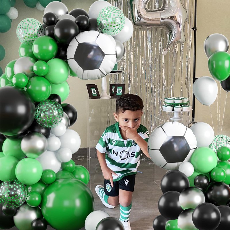 GRESATEK Soccer Party Balloon Garland Arch Kit, Green Black White Metallic Sliver Balloons Decorations With Soccer Foil Balloon for Men Teen Kids Soccer Football Theme Birthday Party Decor Supplies