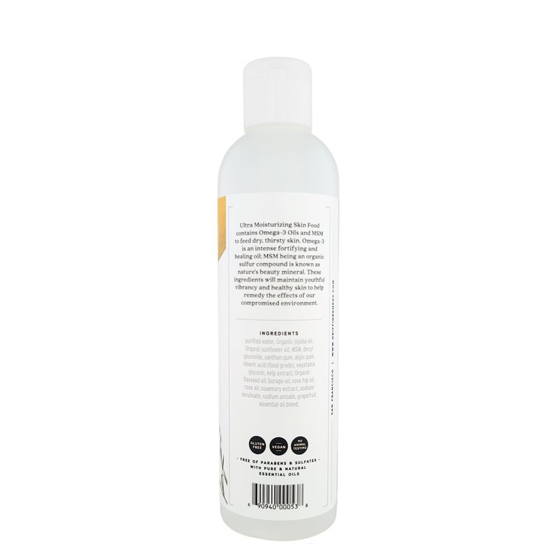 Omega-3 Creamy Body Wash Skin Food is an ultra-moisturizing Skin Food containing Omega-3 oils and MSM to feed dry, thirsty skin. Omega-3 is an intense fortifying and healing oil. The ingredients in Griffin Remedy Body Wash will help maintain youthful vibrancy and healthy skin to help remedy the effects of the world’s compromised environment.