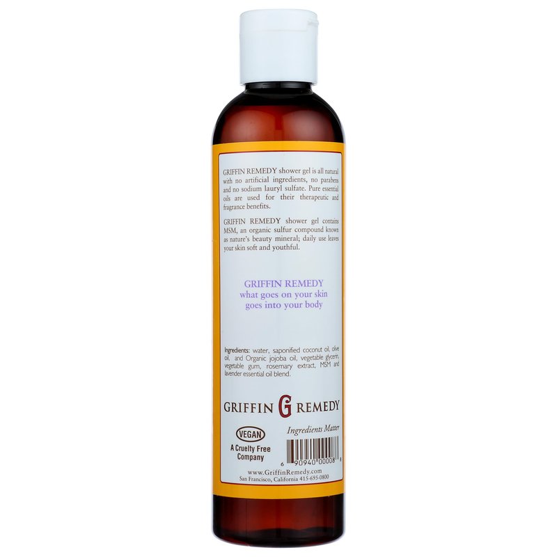 Griffin Remedy Shower Gel - All-Natural Calming Lavender Essential Oils and Organic MSM, Aromatherapy, Paraben Free, Sulfate Free 8 fl oz, 1 count