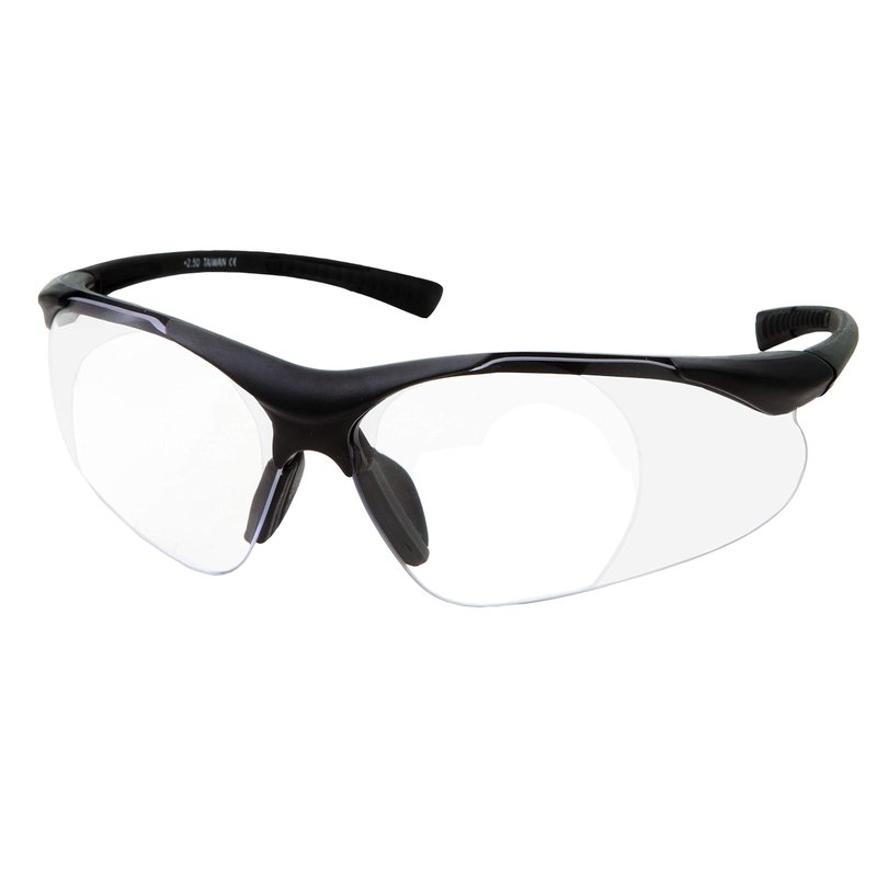 grinderPUNCH Full Lens Magnification Safety Glasses with Black Frame | Clear Lens | | Magnifying Reading Eyewear (+2.00 Diopter)