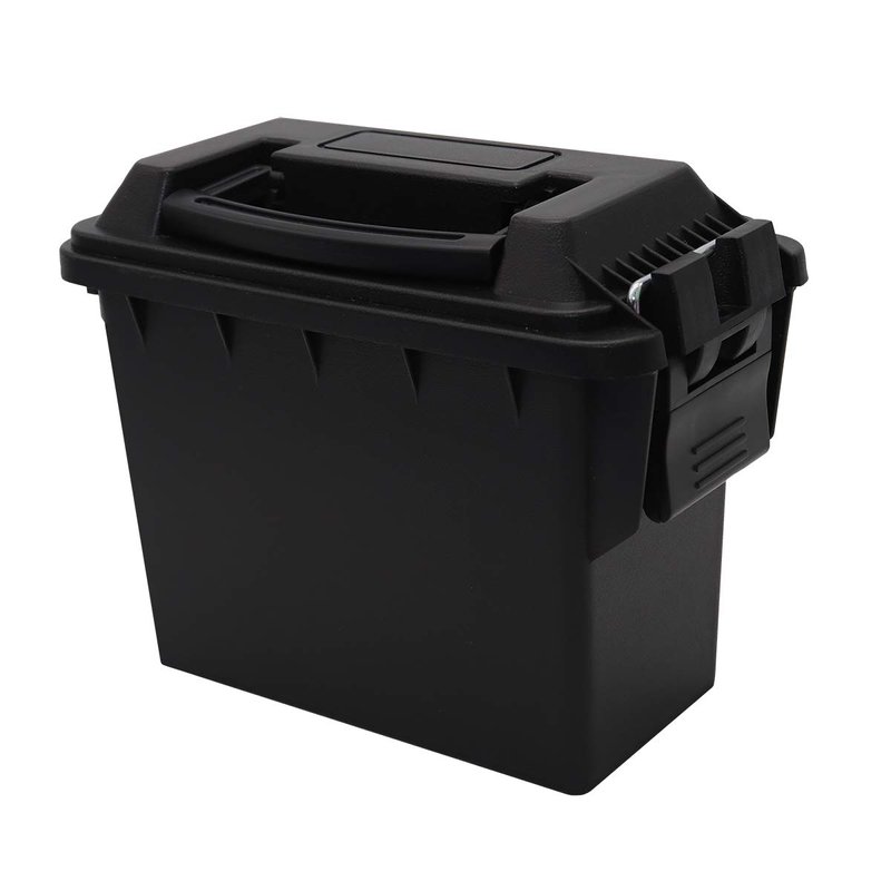 Use to safely store and transport Ammo, Electronics, Money, Crafts, Valuables. Heavy gauge polypropylene for dent-proof, rust-proof, water resistant storage. Reinforced lid resists moisture, latches securely, and can be locked shut for safety. Dimensions: 8.5" L x 4.5" W x 6.75" H,