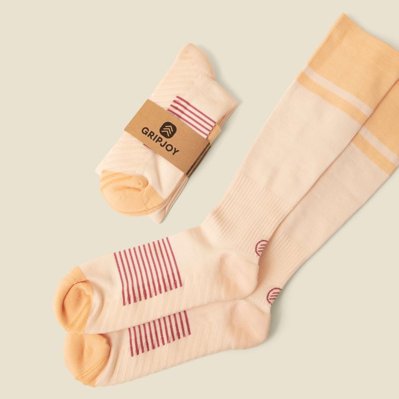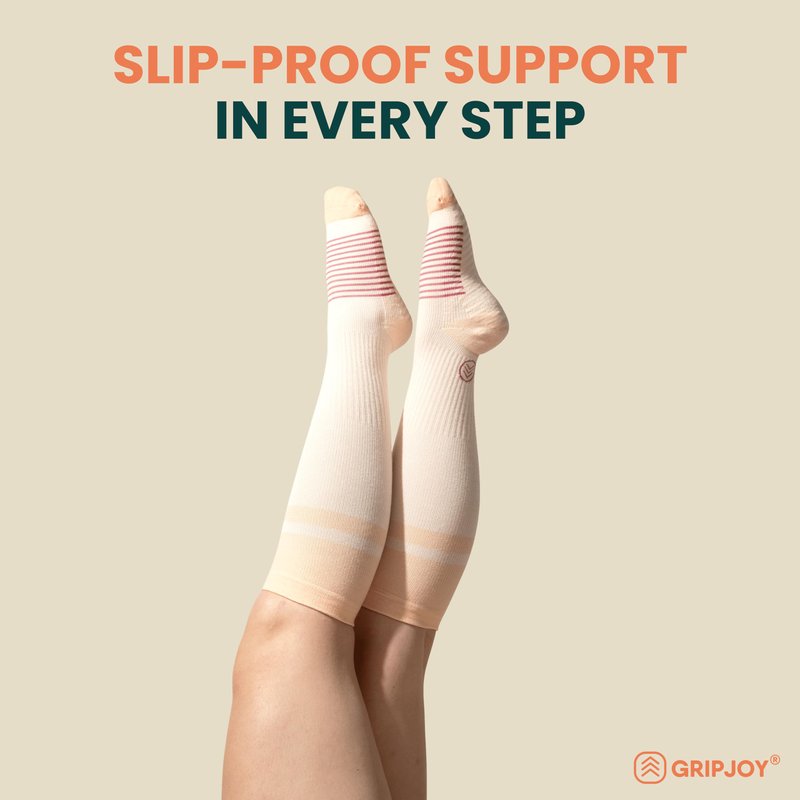 Step confidently with Gripjoy Compression Socks - the ultimate slip-proof solution for your feet! Gripjoy socks have discreet, non-slip grips to give you traction as you stand and walk, especially on slippery wood and tile floors. This also reduces your risk of injury from slipping and falling. Our compression socks offer support at 15-20 mmHg. This makes it ideal for daily use to help boost blood flow and reduce swelling. They can also help combat muscle soreness and fatigue in the legs and feet, so they are perfect for those who are active, pregnant, or always on the go. The socks are made with a luxurious cotton blend, so they're comfortable while providing the right level of support. They also come in beautiful designs, so you’ll love using them regularly. Gripjoy socks are for everyday wear by anyone who wants life to be a little less slippery, including parents, grandparents, and child care providers chasing little ones around; post-surgical patients working towards a recovery; pregnant and postpartum women protecting their most precious gift; elderly individuals seeking greater independence; toddlers taking their first steps; athletes perfecting a yoga pose; those choosing to thrive in the face of a disability; kids running wild in the house; and so many more. About Gripjoy: We’re proudly family run and headquartered in Chicago, USA. Gripjoy was formed in 2018 with a goal of creating beautiful, purpose-driven socks with grips for those who could use a little extra “grip” in their day-to-day lives. We pour our heart into designing each of our styles and take great joy in empowering others to live more confident, independent lives through our thoughtfully crafted socks. From our family to yours, we wish you joy in every step of your journey!