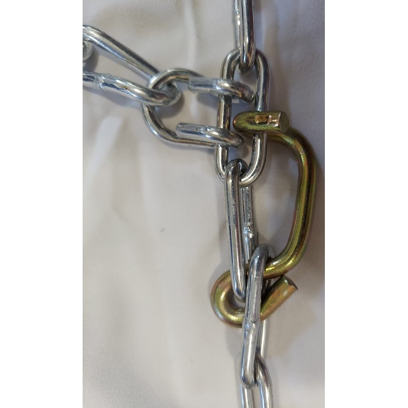 Grizzlar GARDEN TRACTOR CHAIN Ladder Style Grizzlar’s Garden Tractor Ladder Style Chains for use with garden tractors and other special vehicles. - Fits 12.5x4.50-6, 12x7-4, 13x4.00-5, 13x4.00-6, 13x4.1, 13x5.00-6, 4.10-6NHS, 4.10/3.50-6, 4.10-6 tires. - 2 link spacing for better traction. - Manganese steel for longer durability. - Twist link crossmembers. -rubber tensioners included - Can be turned around for longer life. - Inexpensive and simple to install. - Extension kits available for differences in actual tire sizes. Packaging: 1 pair per cotton bag. - For deep lug tires our net style tire chains should be used. EXTENSION KIT: Actual tire dimensions can vary widely with Garden Tractor tires. The extension kit allows to adapt the tire chains to tires which are larger than normal. All of the numbers of your tire size have to exactly match (both number and the order in which the numbers are listed) with our tire size in the application list. If in doubt, contact us. For a complete application list: see pictures. Always check your owner´s manual for possible clearance and use restrictions.