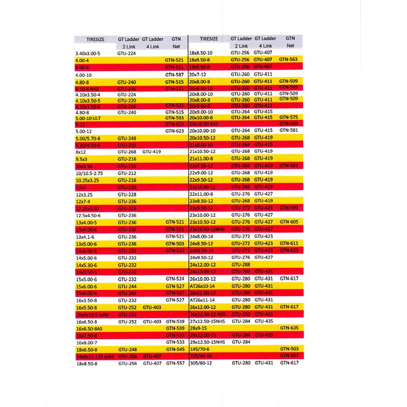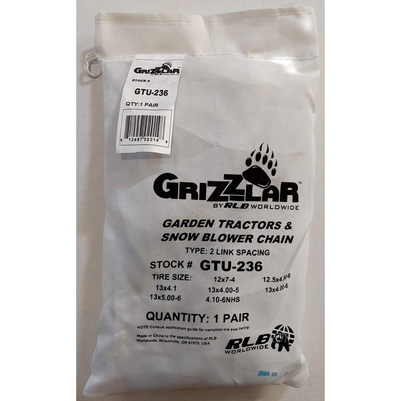 Grizzlar GTU-236 Garden Tractor Snowblower 2 link Ladder Alloy Tire Chains Tensioner included 12.5x4.50-6 12x7-4 13x4.1-6 13x4.00-5 13x4.00-6 13x5.00-6 4.10-6NHS 4.10/3.50-6 4.10-6