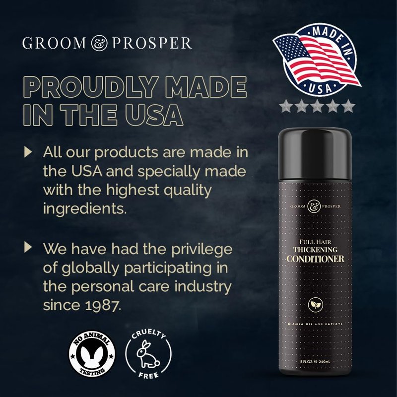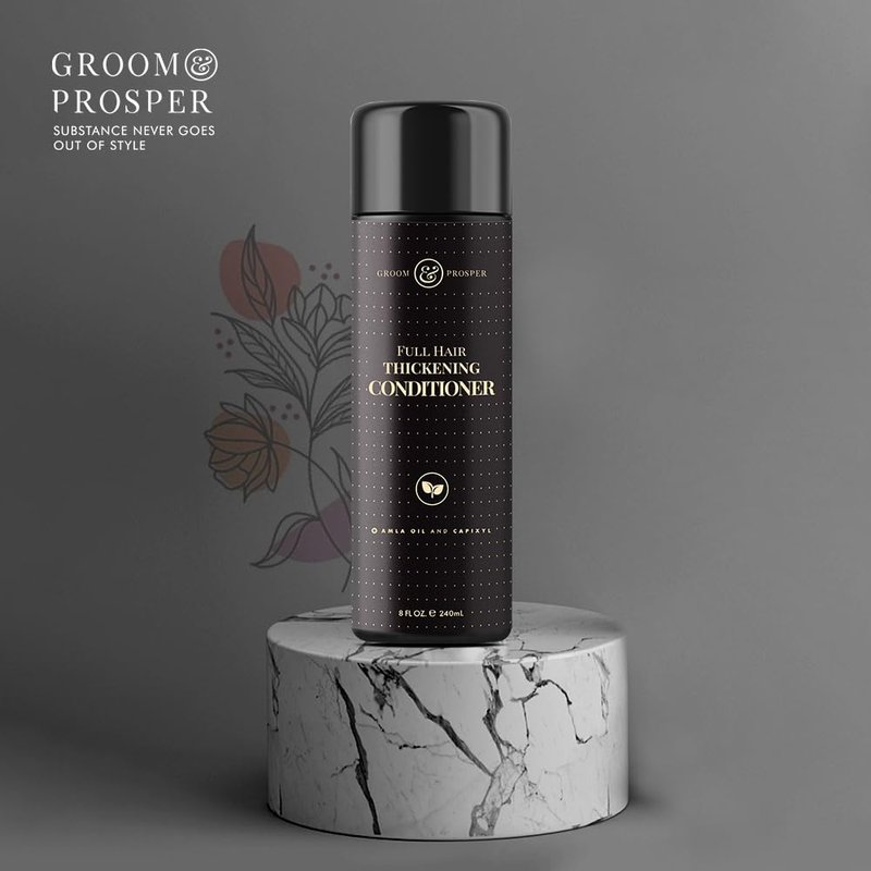GROOM & PROSPER – Full Hair Thickening Conditioner for Men with Capixyl, Biotin, Peptides, Argan Oil, Amla Oil, Aloe vera, Green Tea Extract, and Red Clover Extract – 8oz
