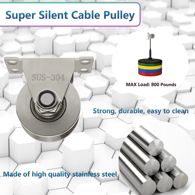 - ✅【Super Mute Duplex Bearing Design】The Silent Duplex Bearing can greatly reduce the friction of the cable pulley and make the cable pulley rotate smoothly and stably. You can hardly hear the sound when it works.
