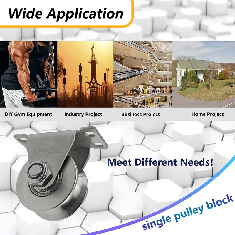 - ✅【Superior Groove Wheel】The Single Wheel Lifting Rope Pulley Block is made of high quality stainless steel, which is durable and easy to clean. The thickened steel plate enhances the bearing capacity of the Rope Pulley, which can carry up to 800 pounds.