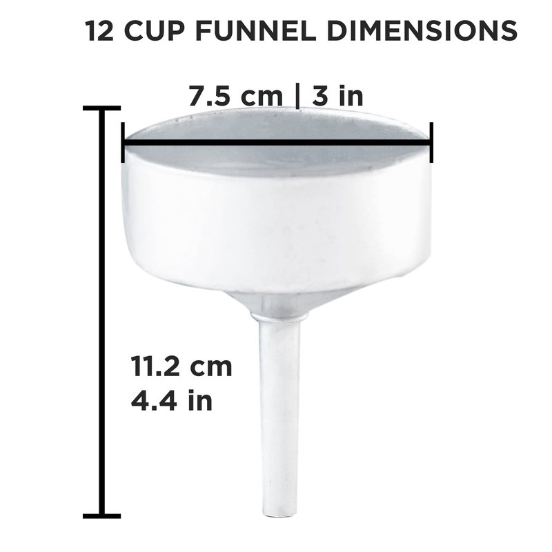 - ⭐ VARIETY OF SIZES: Available in 1-cup, 3-cup, 6-cup, 9-cup, and 12-cup sizes, these replacement funnel filter baskets are versatile and compatible with most aluminum stovetop espresso makers and greca coffee makers. Double-check your funnel filter size before purchasing.