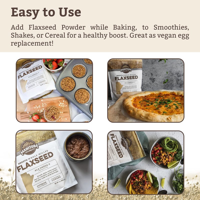 Ground Flax Seed | Manitoba Milling Co | One 1lb Bag | Smooth Milled Flaxseed Fiber with Protein, Omega 3 | Gluten Free, Non-GMO Gourmet Milled Flaxseed for Muffins, Yogurt, Smoothies