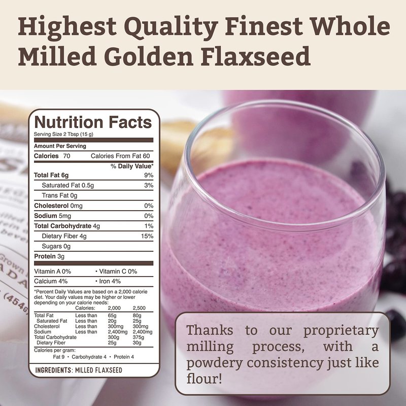 - HIGH QUALITY WHOLE FLAXSEED: We grow, process, and package our own flaxseed to ensure premium quality in every bag. Our seeds are lightly toasted before milling to enhance shelf-life and purity. Our proprietary milling process produces the finest-milled, powdery grain that retains 100% of flaxseed's health benefits