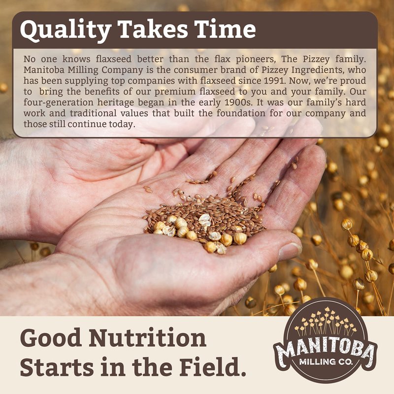 Our smooth, whole milled flaxseeds by Manitoba Milling Company contain protein, omega 3 fatty acids, vitamins, calcium, and iron. Adding flaxseed to your diet helps maintain a healthy blood pressure, immune system, and gut with a simple, power packed scoop. Easily incorporate into your current diet by adding to cereals, drinks, breads, or meals. Our high quality flaxseed is grown, processed, and packaged on our own farms in Manitoba, Canada. We cultivate all natural, premium seeds that are expertly milled to produce a finely-milled grain that retains nutritional value and stays fresh