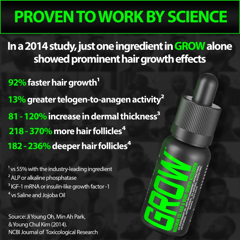 - Jump Start New Growth: Fix hair thinning, receding hairlines, and grow a great beard FAST with GROW. It’s the first hair growth serum made with premium organic ingredients in optimized doses to give you up to 218% increased hair growth—so you can get the hair and beard you’ve always wanted.