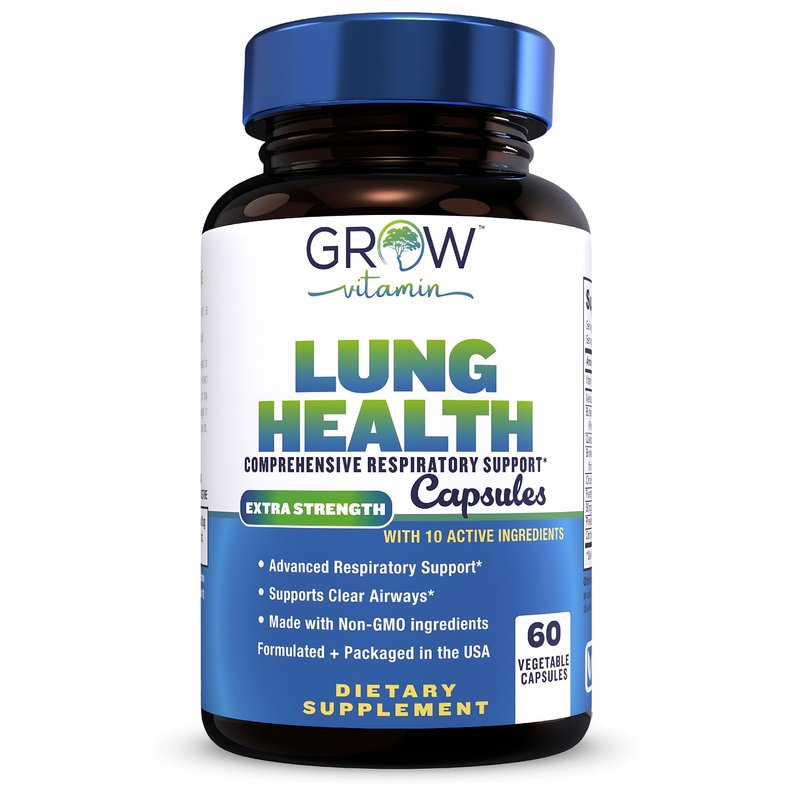 grow vitamin Lung Health, Respiratory Support Supplement, Lung Health Extra Strength Support, Lung Cleanse Formula with Vitamin C to Support Bronchial System, Breath Clear Airways - 60 Capsules