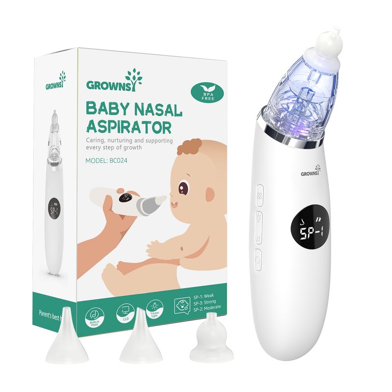 - 【LED Calming Light & Soothing Sounds】The GROWNSY nose sucker for baby is designed with your baby's comfort in mind. With an LED display screen and soothing music to comfort your baby and provide a clean nasal experience, it helps babies sleep well. It's the perfect christmas gift to warm new parents’ heart!