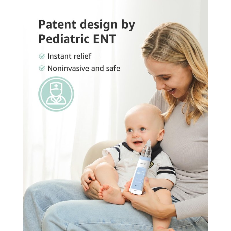 - SIMPLE TO USE AND CLEAN: The ergonomic shape and LCD display make the baby aspirator easy to use. The parts of the baby nose suction are transparent and removable, it's easily cleaned by rinsing in warm soapy water.