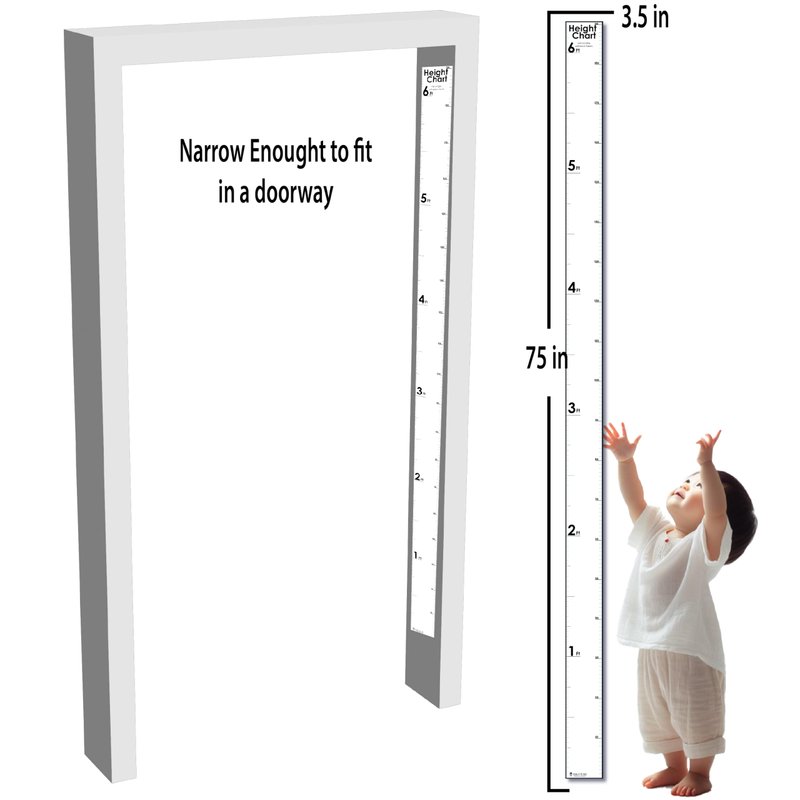 Introducing our innovative Height Growth Chart Reusable Decal – the perfect blend of functionality and charm for capturing precious moments of your child's growth. This versatile decal is designed to adhere to most surfaces without leaving any sticky residue, ensuring a mess-free and hassle-free application. It can be effortlessly rerolled and reattached to different walls, adapting to changing spaces and allowing you to preserve those memorable height milestones wherever life takes you. Standing at over 6 feet tall and measuring 3.5 inches in width, this growth chart provides a comprehensive and visually striking record of your child's growth journey. The slim design, at 3.5 inches wide, is purposefully crafted to fit into most doorways seamlessly, adding an element of convenience to your tracking process. Not only is this decal a practical tool for monitoring your child's height progression, but it also doubles as a charming and thoughtful gift for new parents. Its timeless design and ease of use make it a perfect addition to any nursery or playroom. The decal's aesthetic appeal, combined with its functionality, transforms it into a cherished keepsake that captures the essence of your child's developmental milestones. Crafted with quality in mind, our Height Growth Chart Reusable Decal is built to last, ensuring that it remains a cherished part of your family's memories for years to come. Embrace the joy of watching your child grow with this versatile, stylish, and reusable height chart decal – a must-have for every growing family.