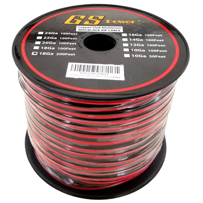 GS Power 18 Gauge 200’ Red /200' Black (400 feet Total) Bonded Zip Cord Speaker Cable for Model Train Car Audio Radio Amplifier Remote 12V Automotive Trailer Harness LED Light Wiring