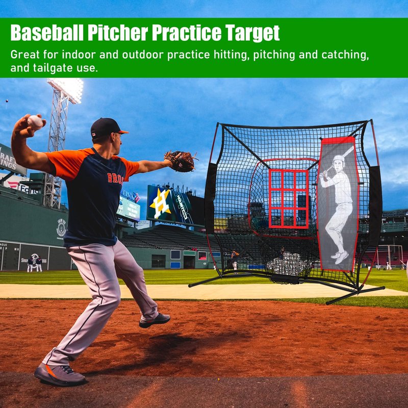 Gsbomzap 2PCS Baseball Softball Pitching Target & Dummy Batter, Adjustable Baseball Pitching Net Training Aids 9 Hole Strike Zone Attachment, Baseball & Softball Practice Net for Hitting Accuracy