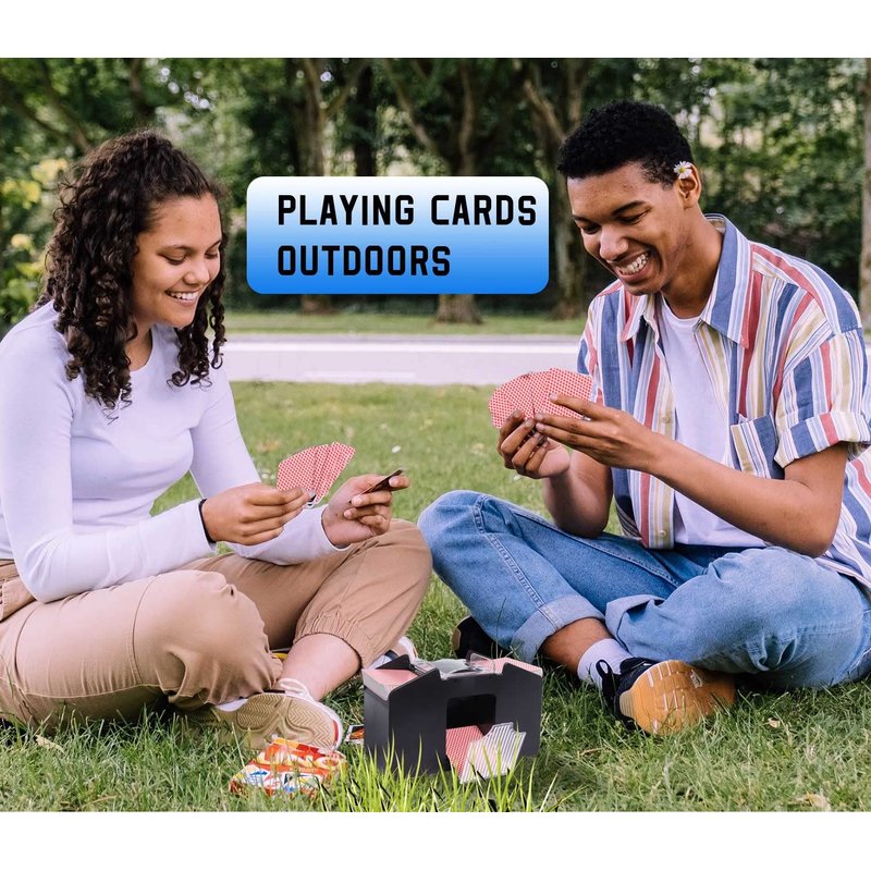 - 1-4 DECK AUTOMATIC CARD SHUFFLER – This casino card shuffler works with most of card games such as bridge, poker, texas hold 'em, blackjack, casino poker games, UNO, etc. The card collection tray will effectively shuffle the cards in a few seconds, up to 1-4 decks of cards, only 1-6 seconds, so you can spend less time shuffling and more time playing games.