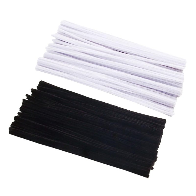 GSHLLO 200 Pcs Craft Pipe Cleaners Fuzzy Chenille Stems DIY Pipe Art Decorations Chenille Crafts Pipecleaners Twistable Stems for Kids Children Black White