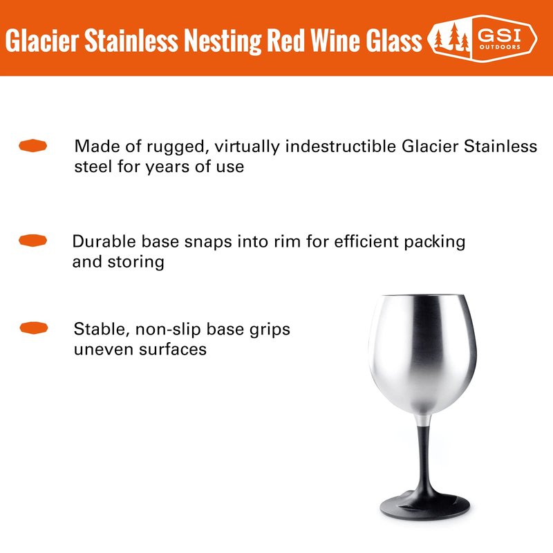 - Adaptable to any occasion: The Glacier stainless nesting red wine glass can be used on a campground, during a concert, or just in your Backyard.