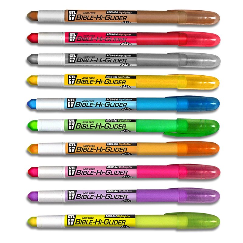 G.T. Luscombe Company, Inc. Accu-Gel Bible-Hi-Glider Inductive Bible Study Set | No Bleed Solid Gel Highlighter | No Smearing or Fading | Long Lasting Bright Translucent Colors (Set of 10) [Paperback]