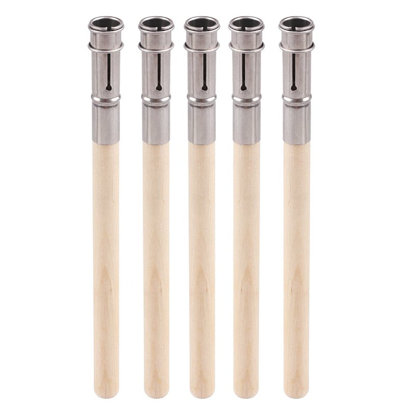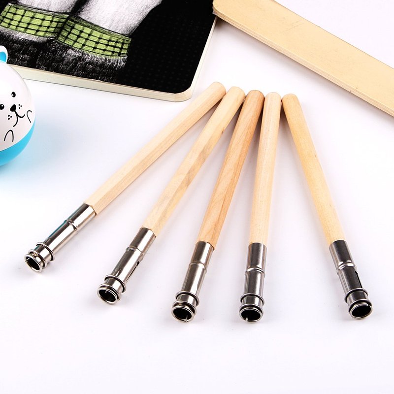 GTHER 5PCS Wooden Pencil Extender,Adjustable Art Pencil Lengthener, Pencil Extender Holder with Aluminum Handle for Colored Pencils Crayon School Office Supplies