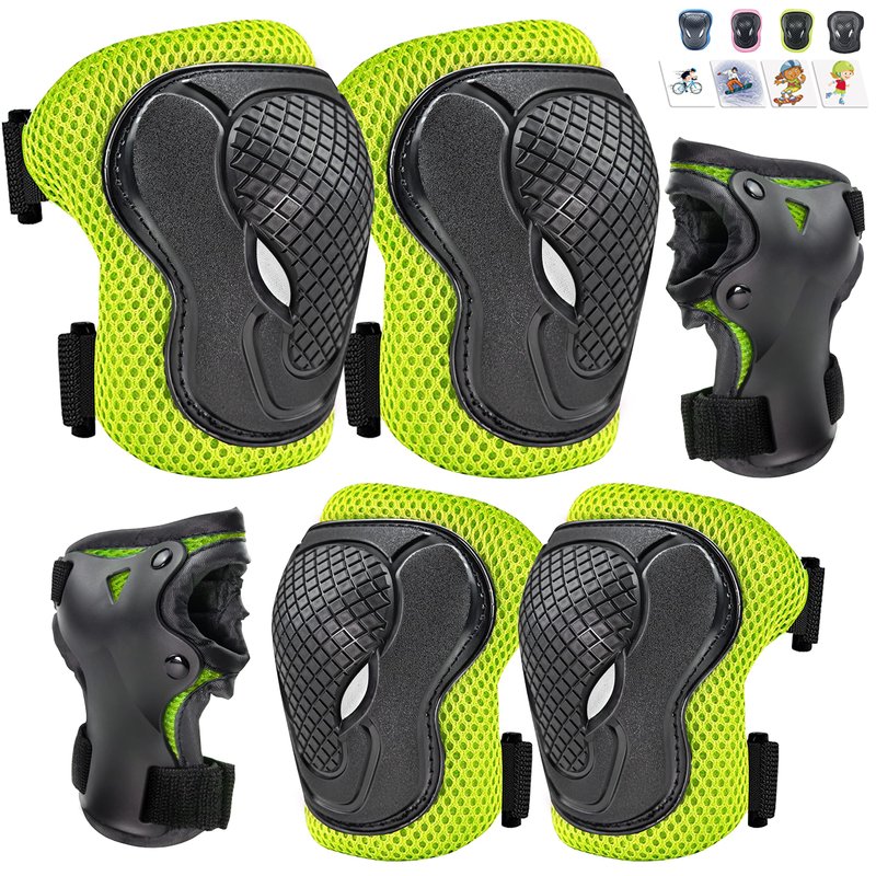 GTSBROS Knee Pads for Kids Knee Pads and Elbow Pads 6 in 1 Protective Gear Set with Wrist Guard for Boys Girls Skateboarding Inline Roller Skating Cycling Scooter…(Green)