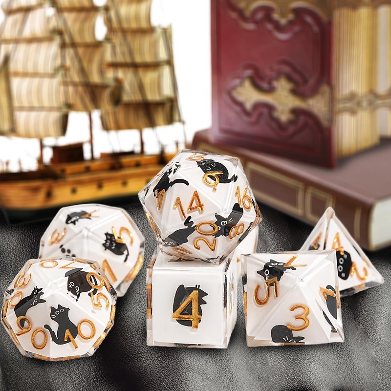 GU BEI TE DND Dice Set 7-Pcs, Sharp Edge Cute Cat Style Resin Dice Polyhedral Resin Sharp Edge Dice for Roleplaying Games Dungeons and Dragons RPG MTG Table Games